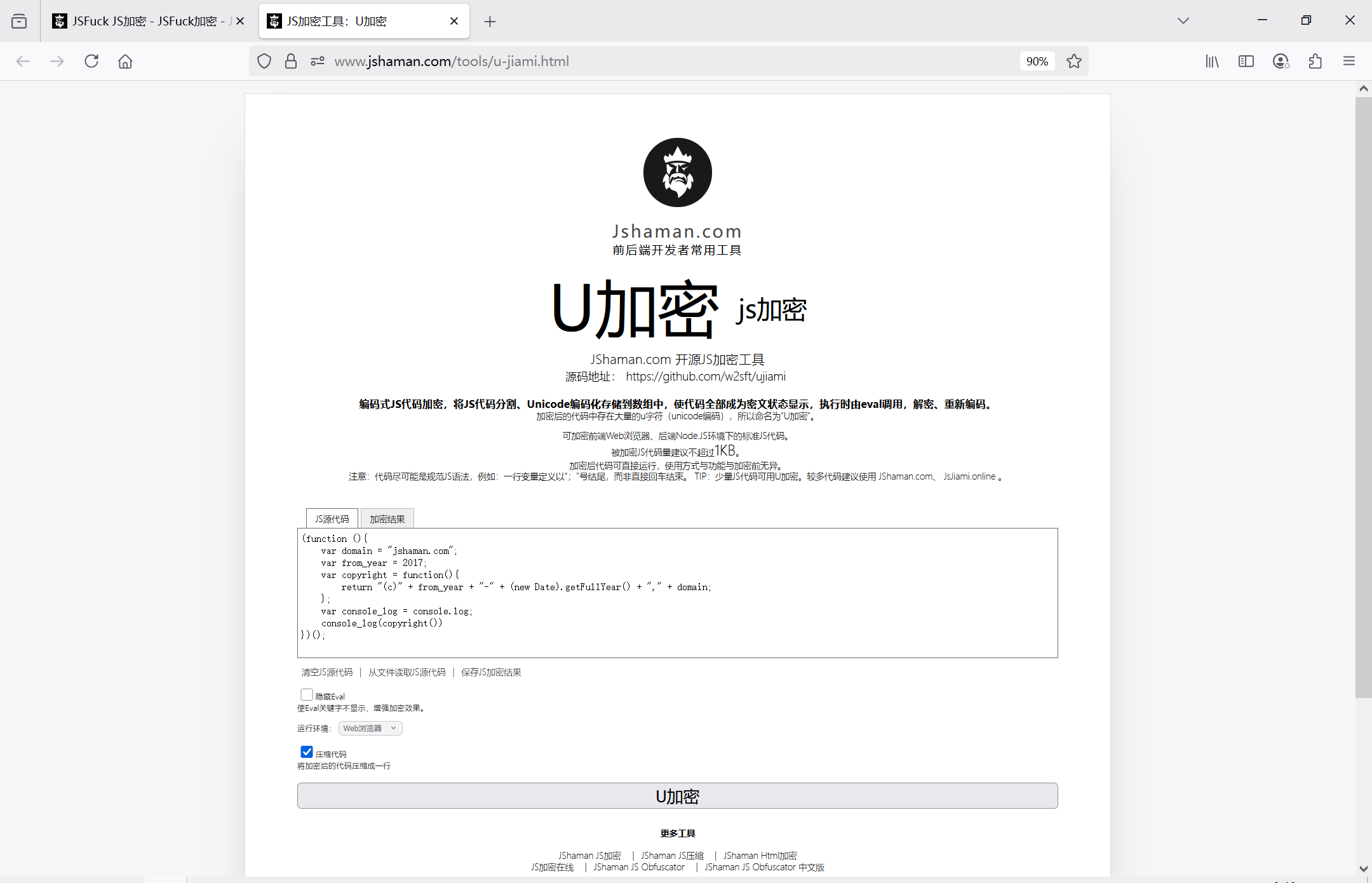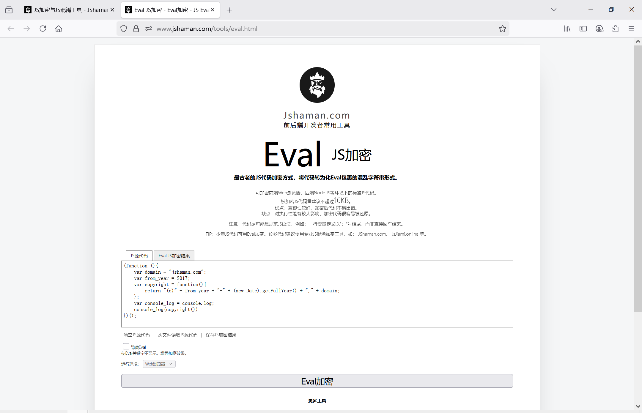 此工具能提供的JS加密服务与JShaman官网是一样的。
