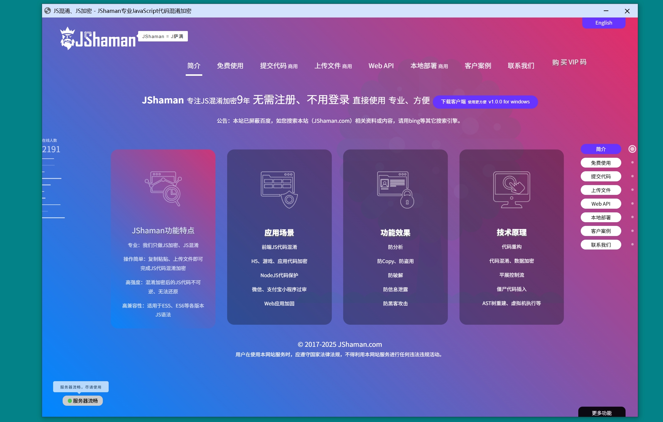 可用于前端JS代码混淆;H5、游戏、应用代码加密;NodeJS代码保护;微信、支付宝小程序过审;Web应用加固等领域。