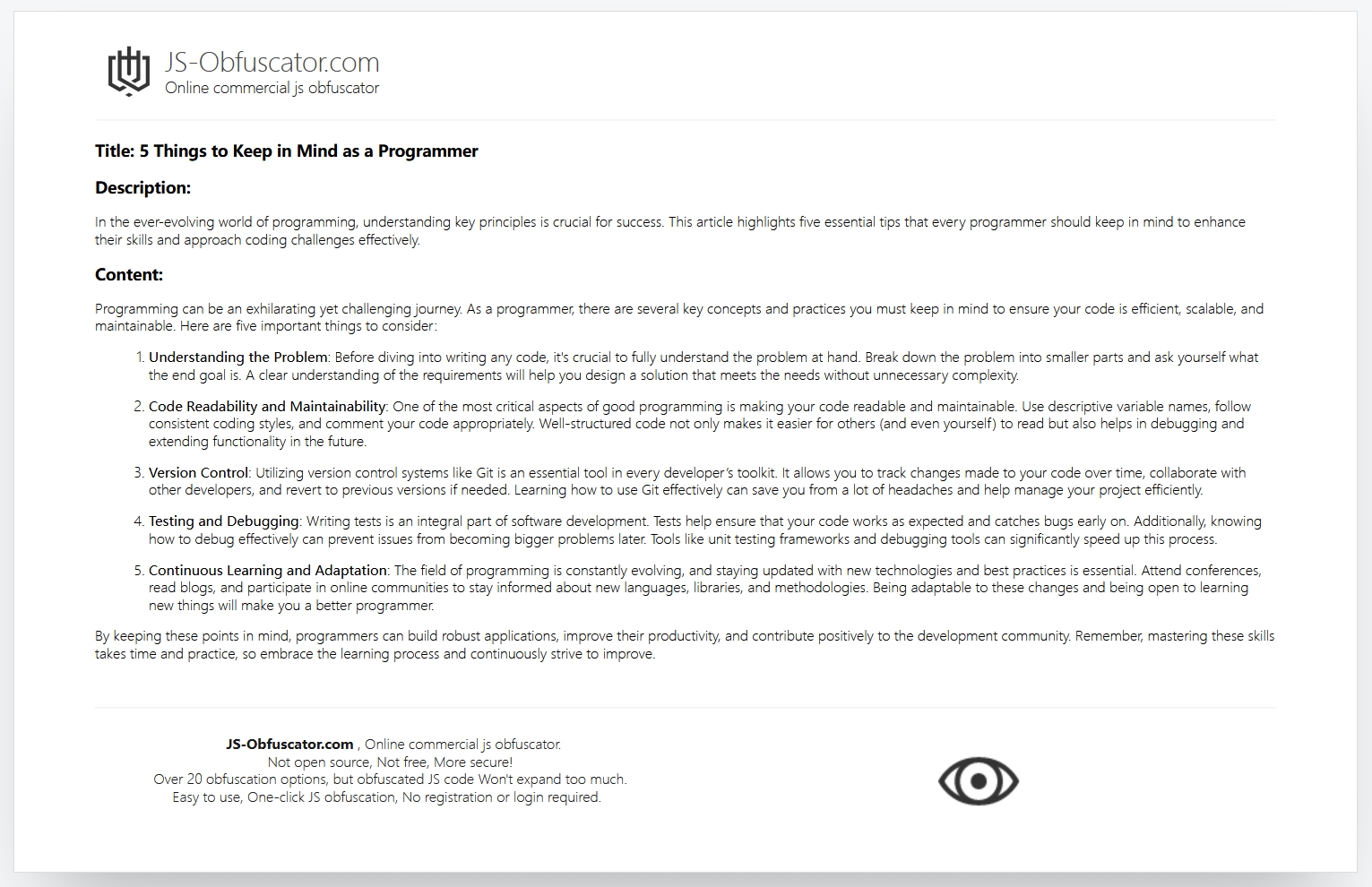 By keeping these points in mind, programmers can build robust applications, improve their productivity, and contribute positively to the development community. Remember, mastering these skills takes time and practice, so embrace the learning process and continuously strive to improve.