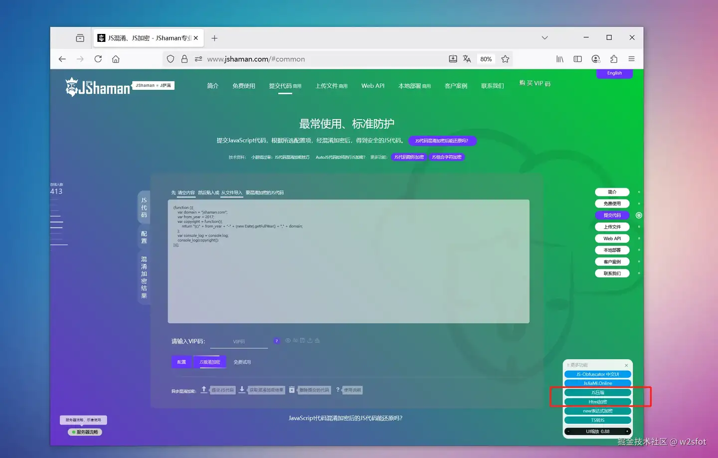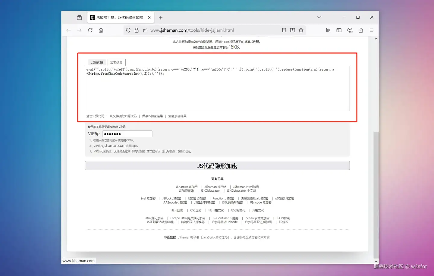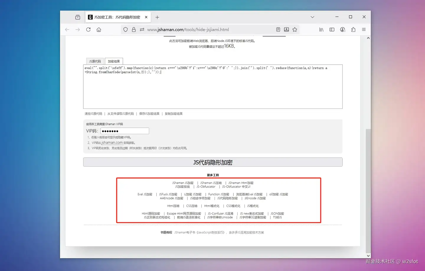 但这个工具使用是有点门槛的,它不是免费工具,需要JShaman的VIP码才能使用。 不过JShaman的VIP码性价比真的是不错的,有一个VIP码,可以使用JShaman网站上数十种工具,比如: