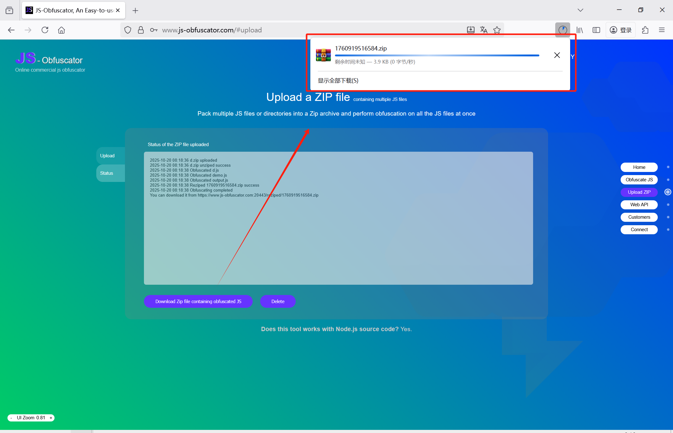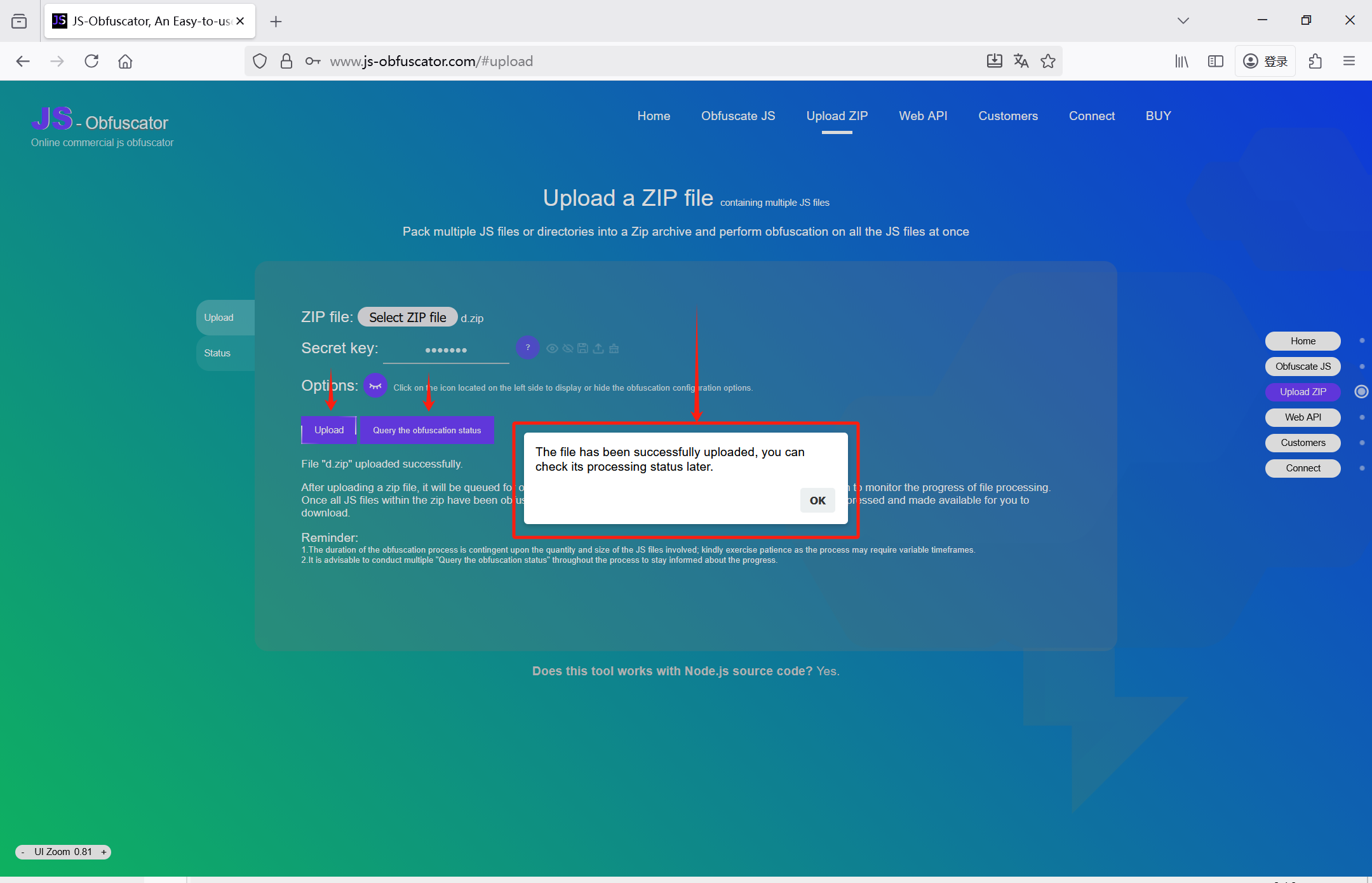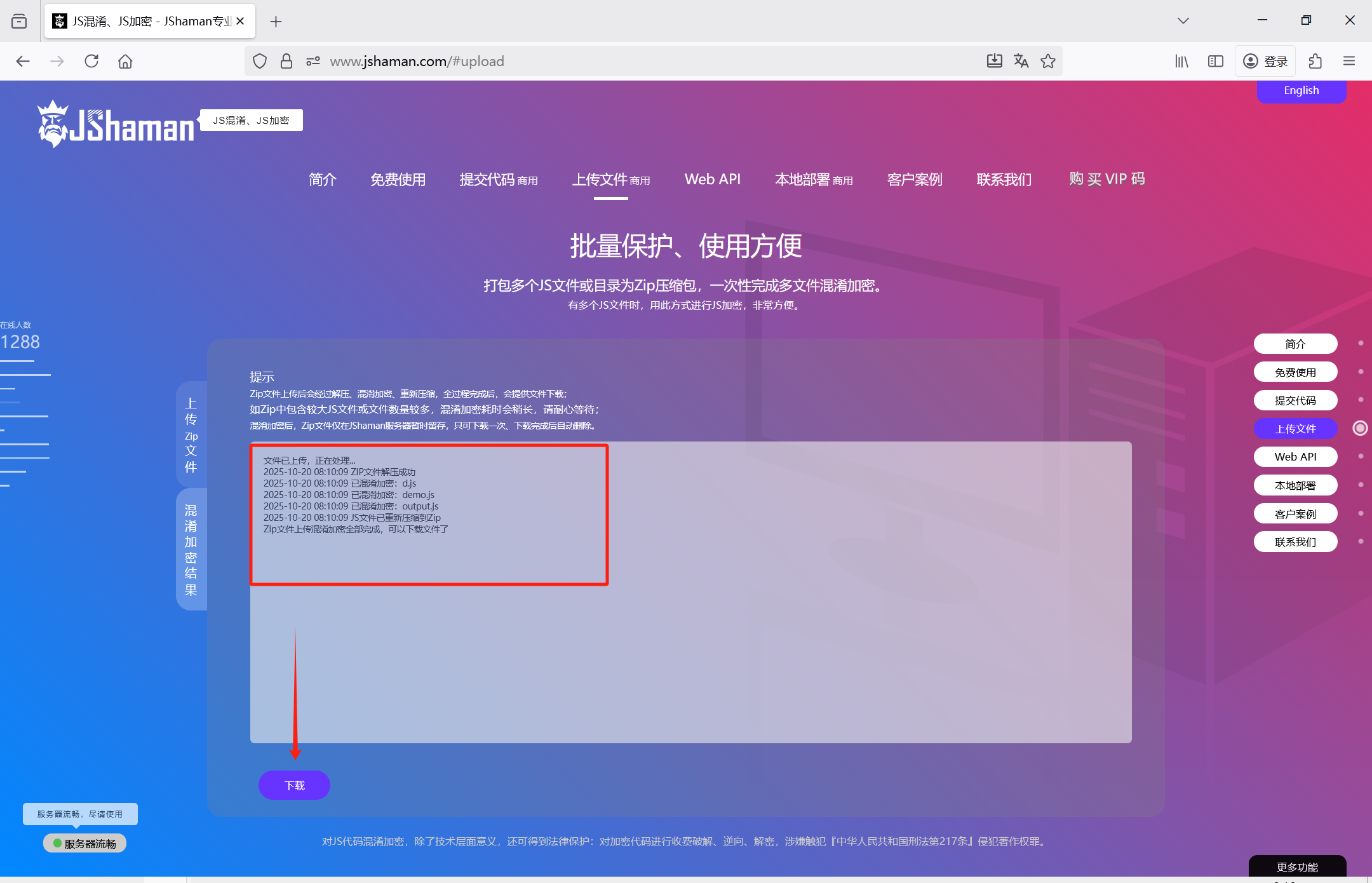 但对Zip上传加密不同(将多个JS文件压缩成zip文件,一次性完成加密)。