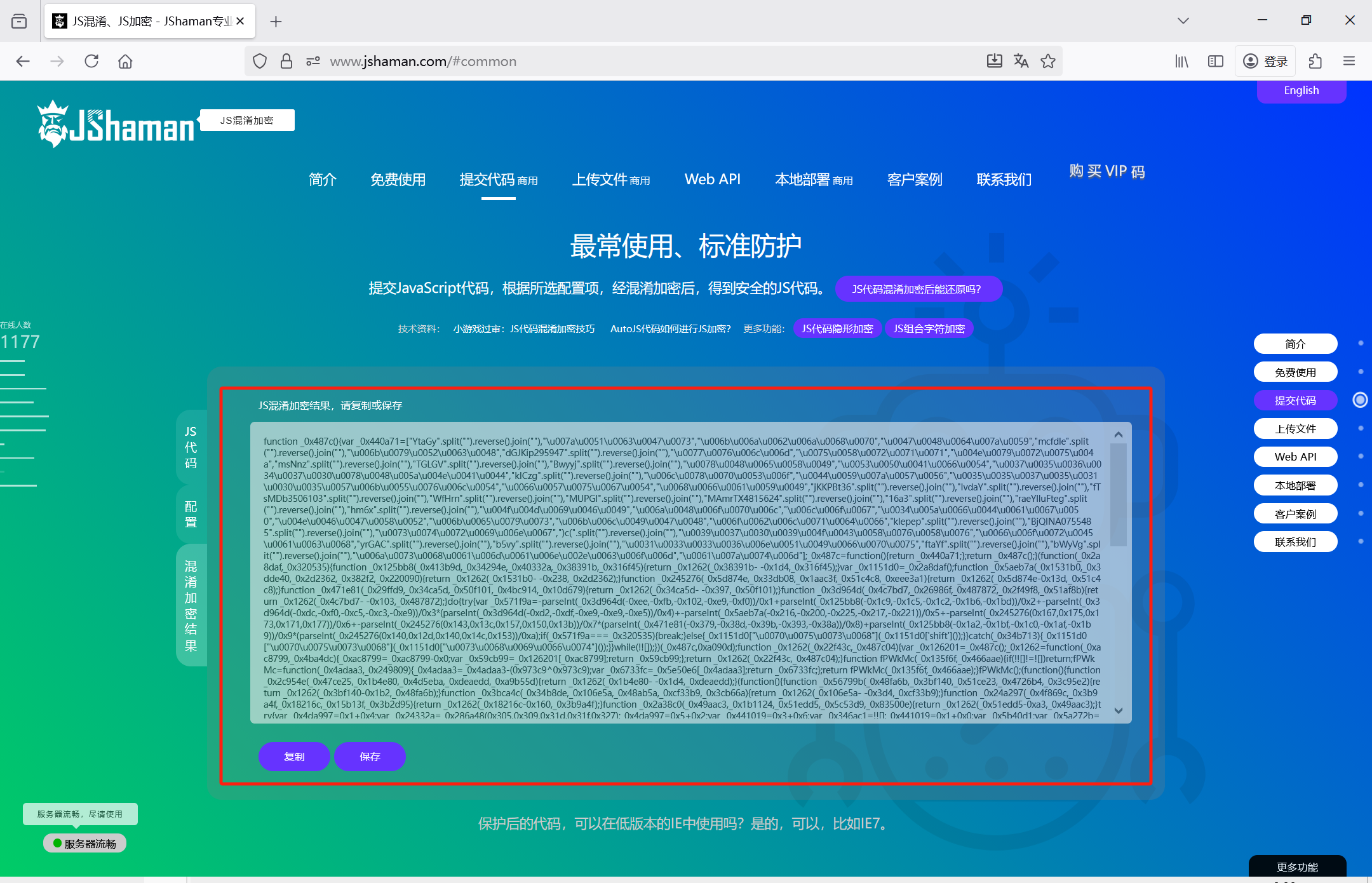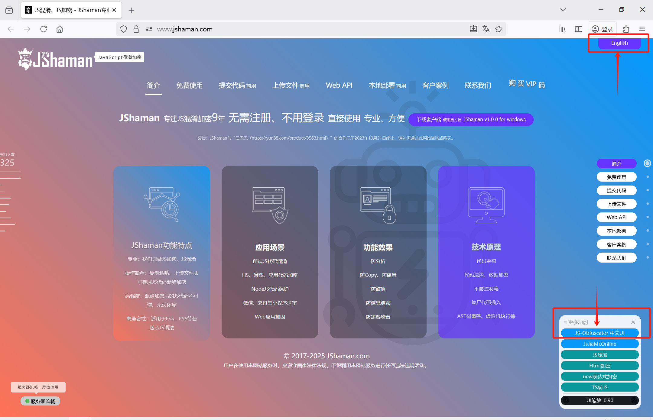 国内的域名是:jshaman.com,海外版是:js-obfuscator.com。
