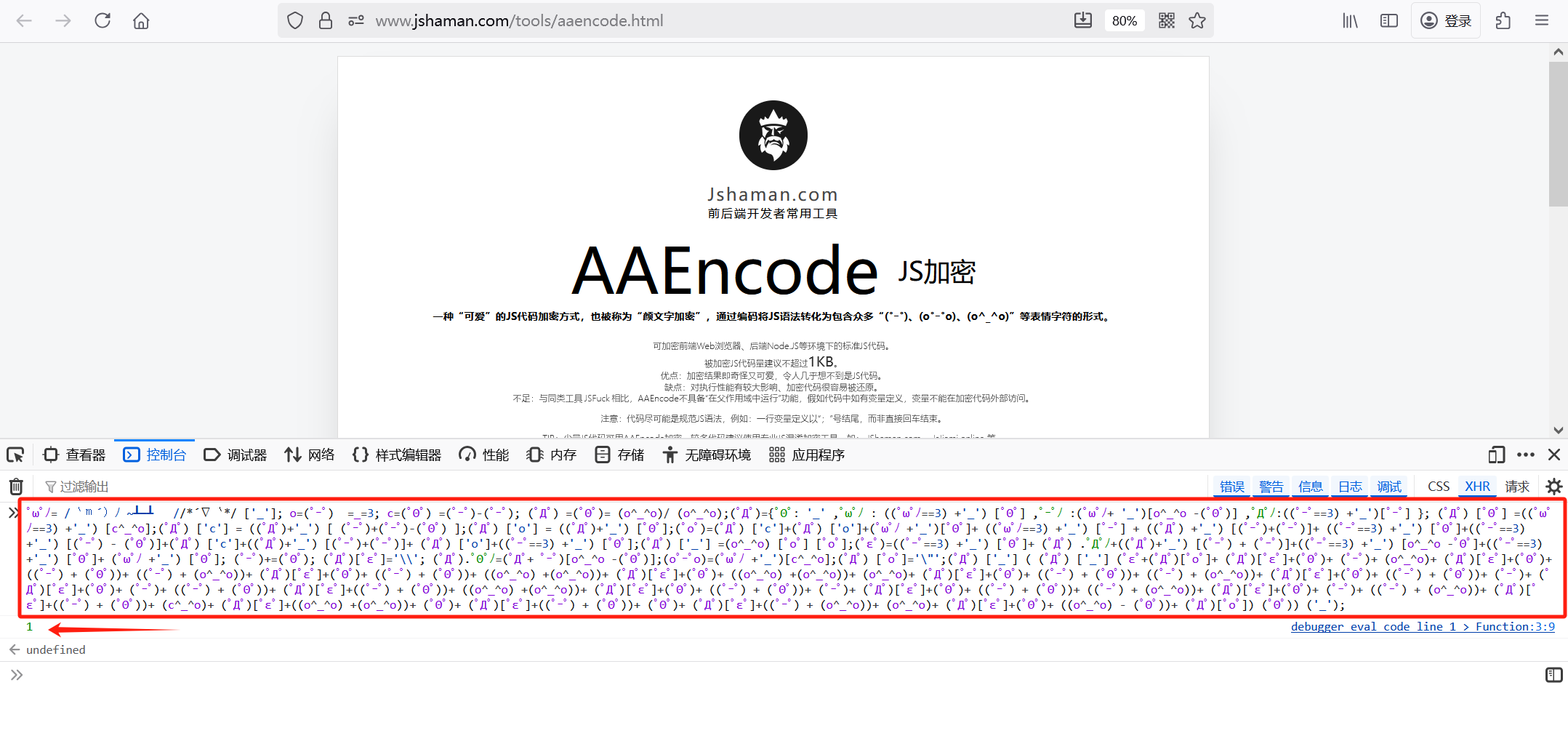 不足:AAEncode不具备“在父作用域中运行”功能,假如代码中如有变量定义,变量不能在加密代码外部访问。
