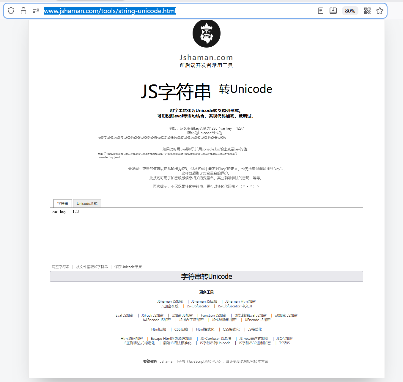 例如,定义变量key的值为123:“var key = 123;”转化为Unicode形式为:
