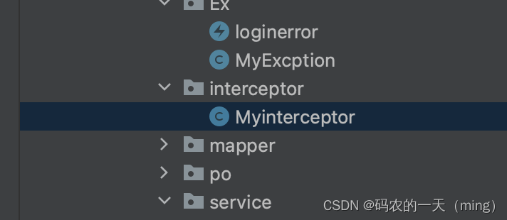 类的名字可以随便取 ssm项目的拦截器主要需要配置mvc.xml里面的配置以及自己写的这个类 要继承一下HandlerInterceptor方法
