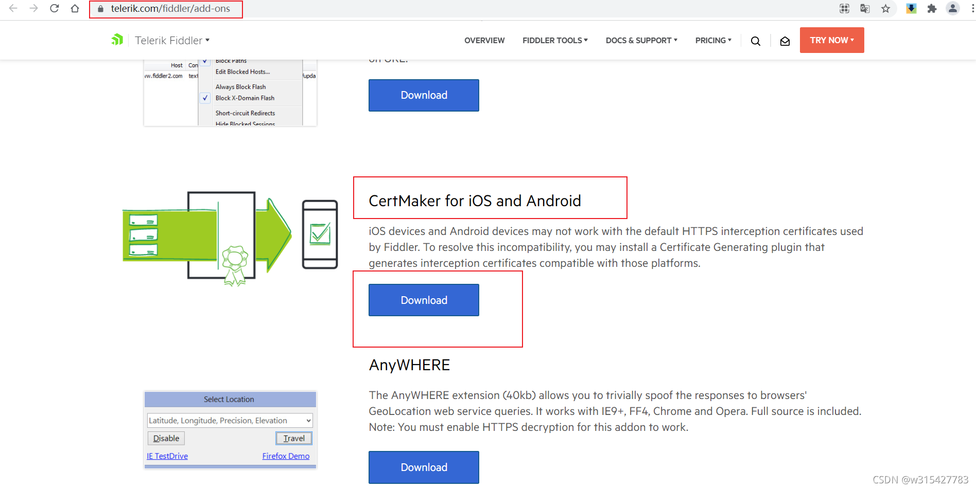 fiddler默认的证书是基于命令行工具makecert.exe,几乎所有windows客户端都接受该工具生产的证书,但是apple ios设备(iphone、ipad)和少部分的android要求根证书和服务器证书包含makecert.exe生产的证书中所没有的其他元数据。为了兼容这些设备,需要下载fiddler插件"cermaker for ios and android"