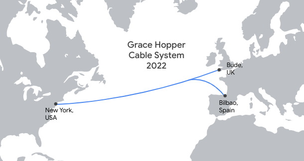 谷歌今天宣布了一项计划建造一条新的海底电缆的计划,该电缆的着陆点位于美国纽约,英国布德和欧洲西班牙毕尔巴鄂。这条新电缆以计算机科学家Grace Hopper的名字命名,将与Google的其他各种私人海底电缆一起使用,例如美国和南美之间的距离,美国和法国之间的杜南以及欧洲和非洲之间的Equiano。