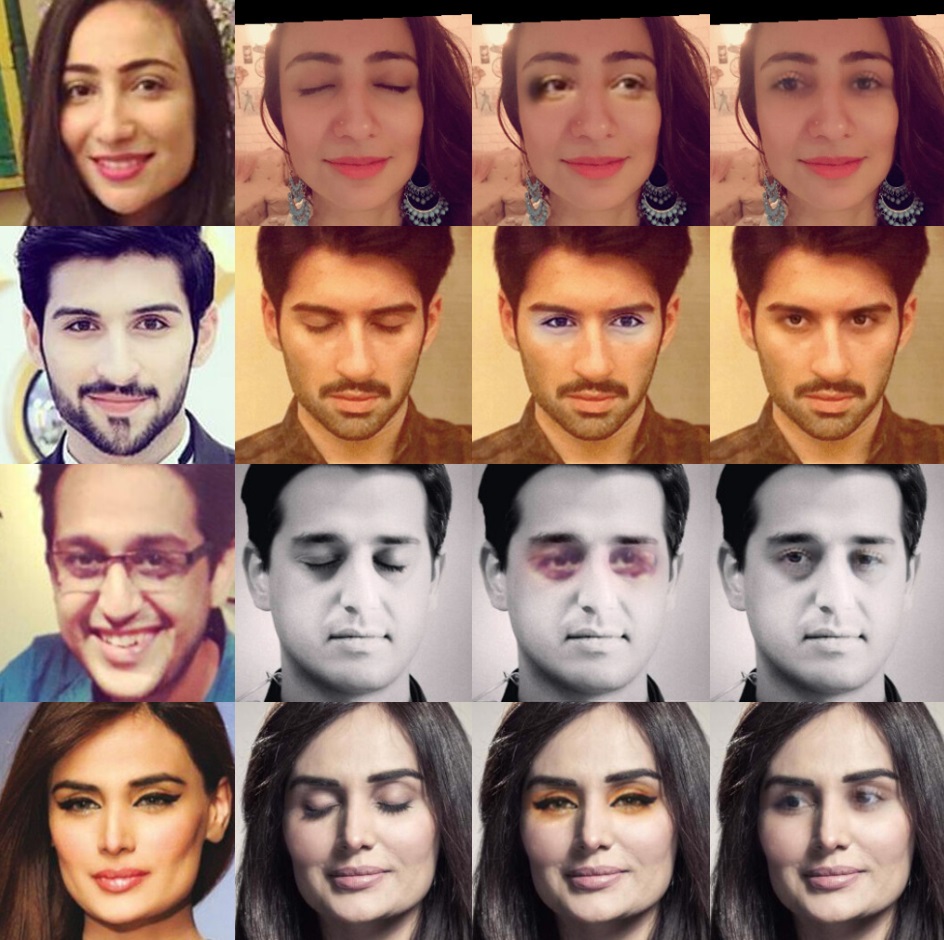 人工智能研究人员所做的就是将“示范”数据包括在内,以显示眼睛打开的目标人物,从中GAN不仅了解到眼睛应该在人身上发生什么,而且还知道这个人的眼睛是如何塑造,着色等等上。