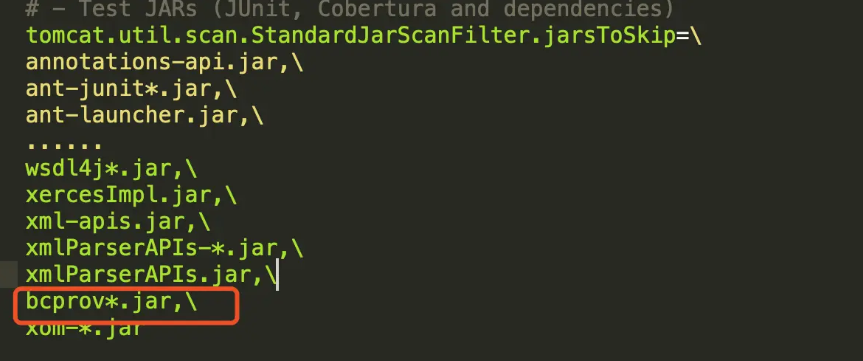 修改tomcat里面的catalina.properties 配置文件,增加这个jar包的Skip,如下: