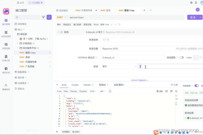 3、初学者断言方式是直接在接口后面加一个断言验证是否和自定义结果一致