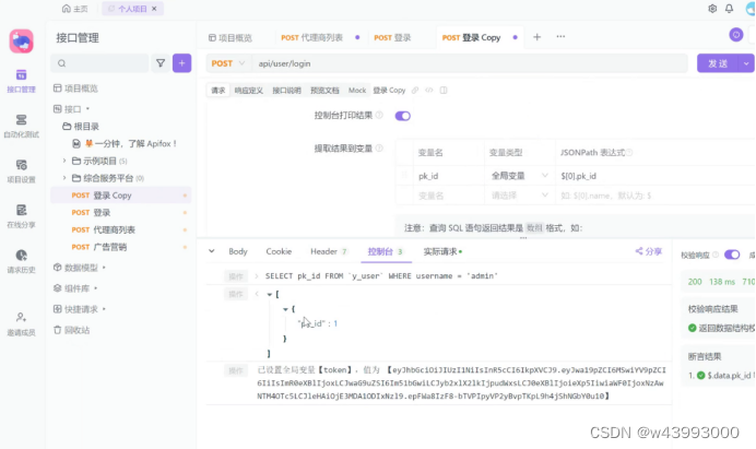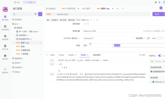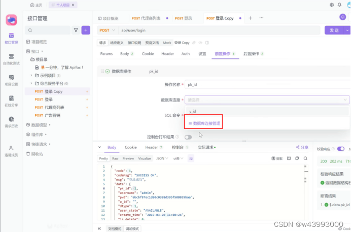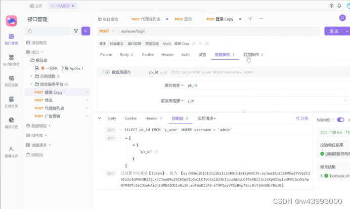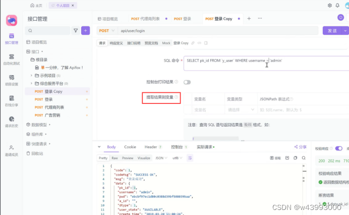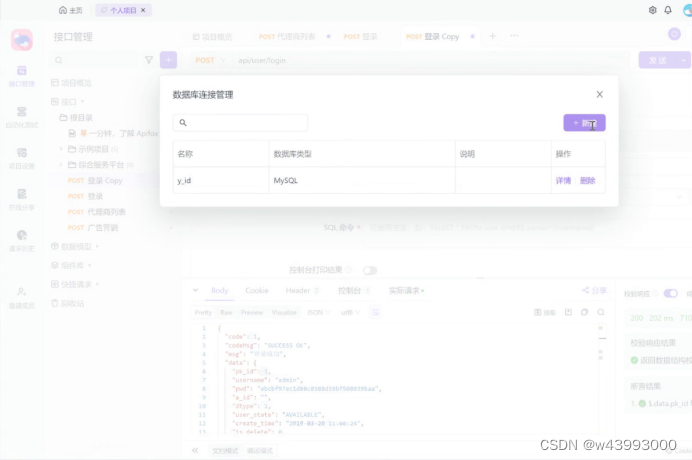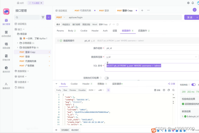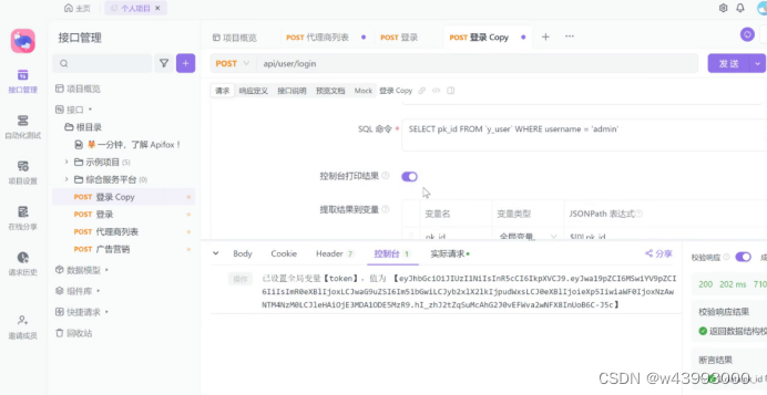把数据库查询的命令放到 Apifox 的SQL命令中