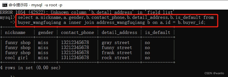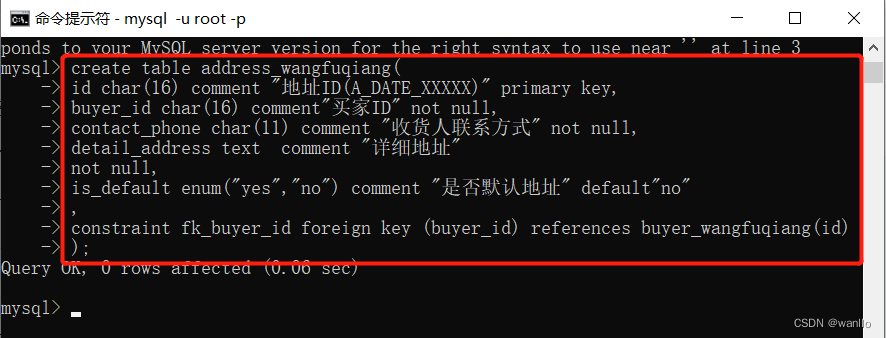 - 创建地址表“address_姓名全拼”,表中字段信息如下: