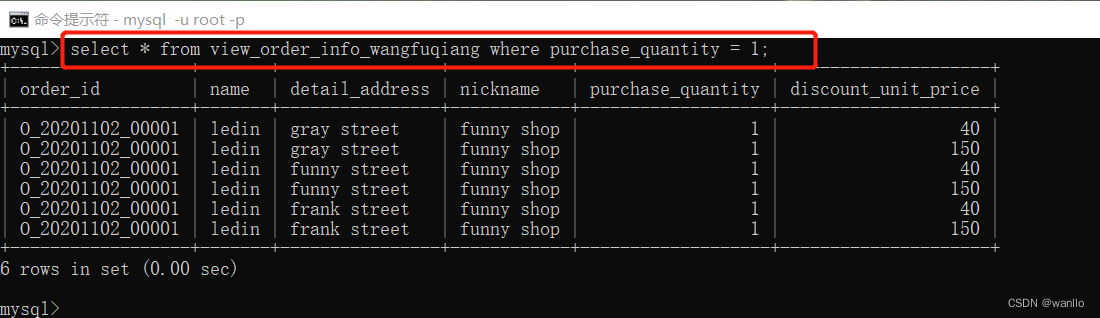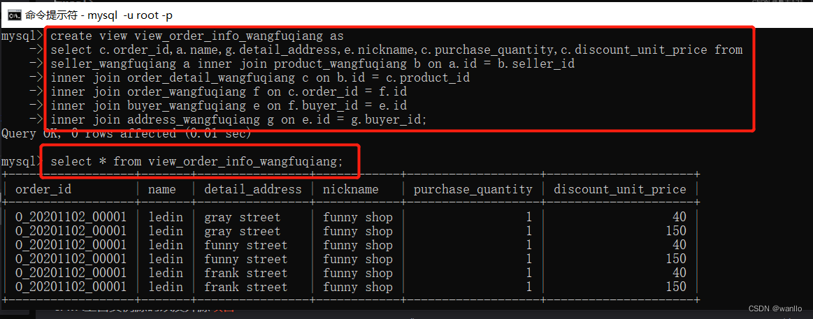 - 创建订单信息视图“view_order_ info_姓名全拼”查看上述内容