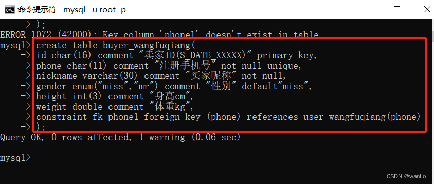 - 创建买家信息表“buyer_姓名全拼”,表中字段信息如下:
