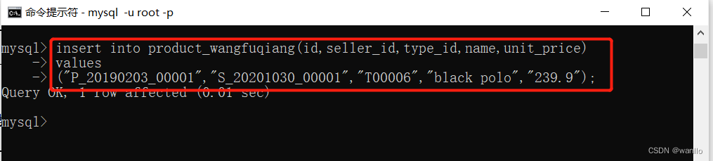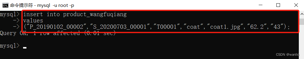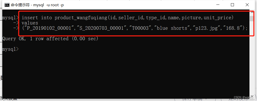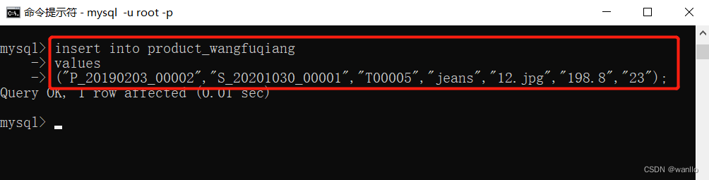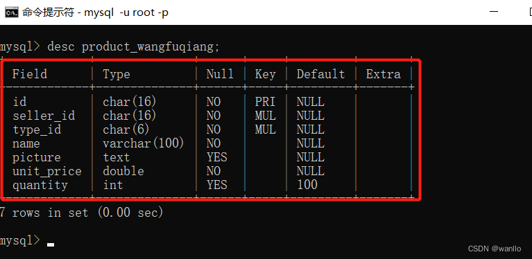 - 创建产品表“product_姓名全拼”,表中字段信息如下: