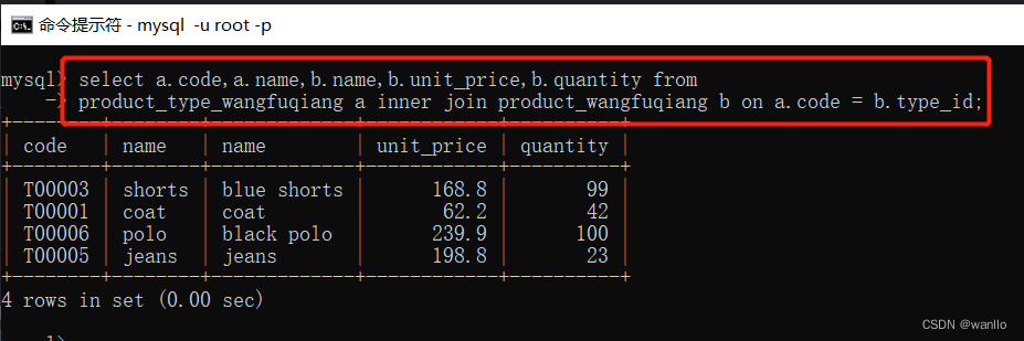- 查看产品种类编码、产品种类名称、产品名称、单价、库存