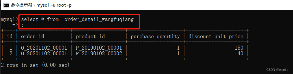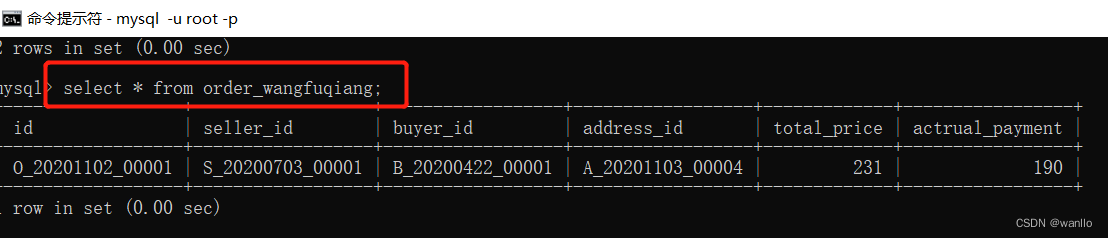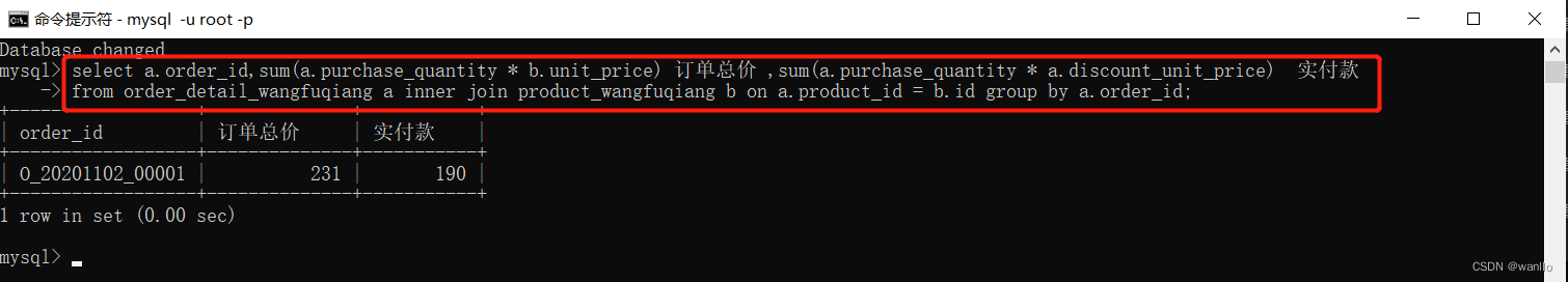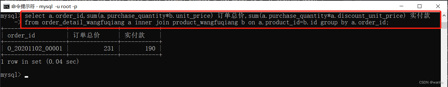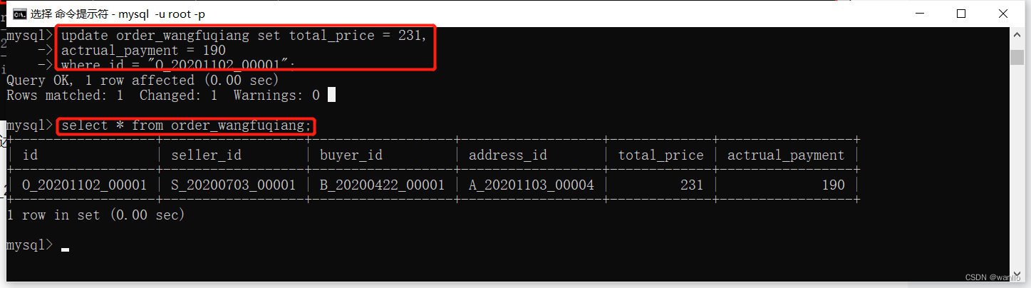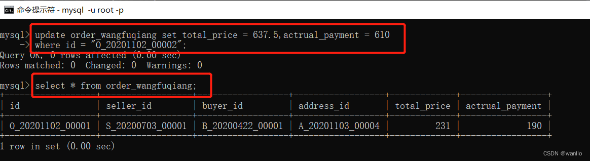 - 根据上述代码计算出的值修改订单表中O_20201102_00002订单的实付款数据