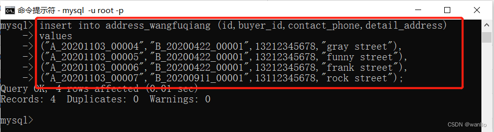| A_20201103_00006 | B_20200422_00001 | 13212345678 | frank street |