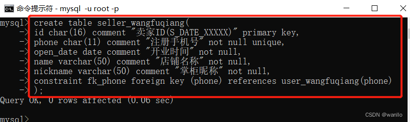 - 创建卖家信息表“seller_姓名全拼”,表中字段信息如下: