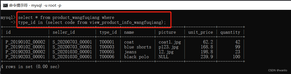 - 查看产品信息视图中已经有过订单销售记录的产品数据(子查询 in)