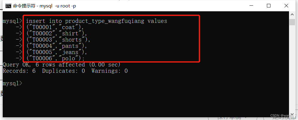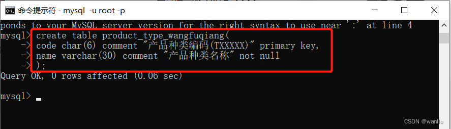 - 创建产品种类表“product_type_姓名全拼”,表中字段信息如下: