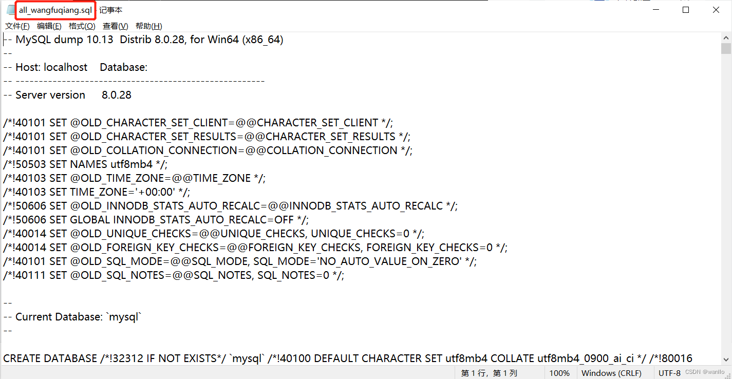 - 备份所有数据库,文件名为“all_姓名全拼.sql”(截两张图 命令+文件)