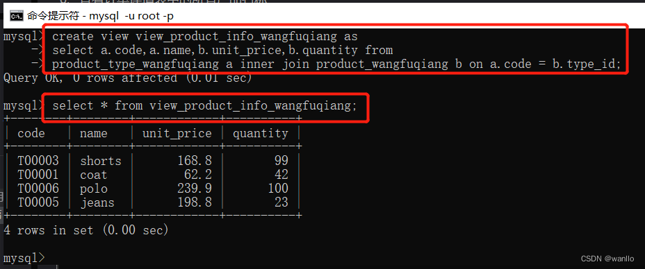 - 创建产品信息视图“view_product_ info_姓名全拼”查看上述内容