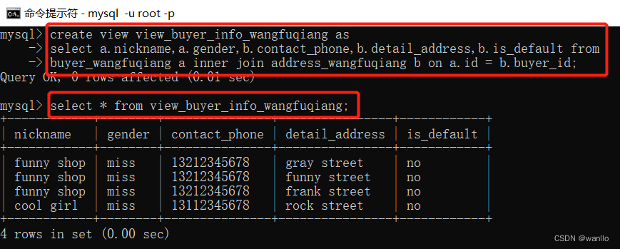 - 创建买家信息视图“view_buyer_info_姓名全拼”查看上述内容