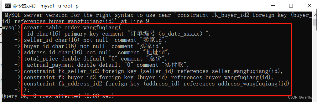 - 创建订单表“order_姓名全拼”,表中字段信息如下: