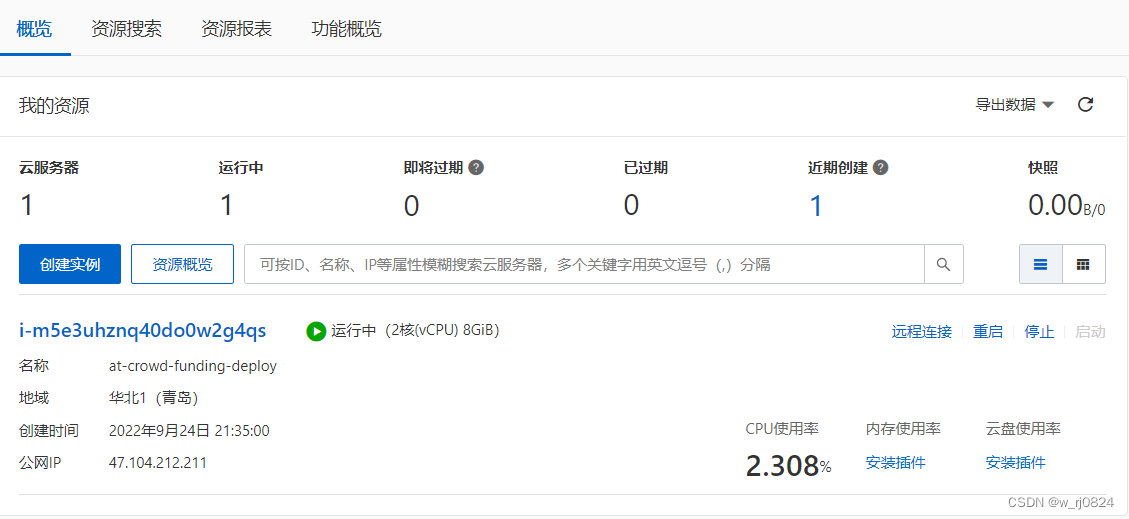 由于所有程序、Web 应用、微服务都要在一个实例中运行,所以实例的内存建议使用 8G 内存。
