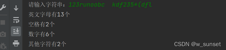 题目:输入一行字符,分别统计出其中英文字母、空格、数字和其它字符的个数。