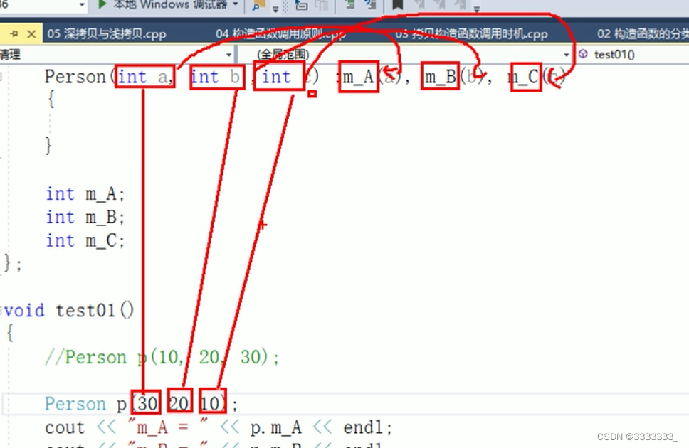 Person(int a, int b, int c) : ma(a), mb(b), mc(c) {