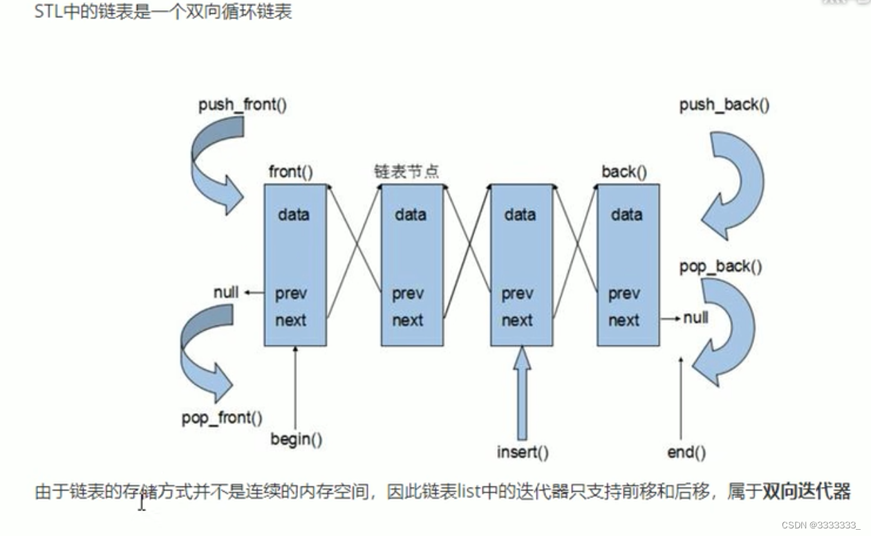 list容器中的迭代器,不管是在迭代器后面插入删除都不会影响迭代器,除非删除迭代器指向的元素。