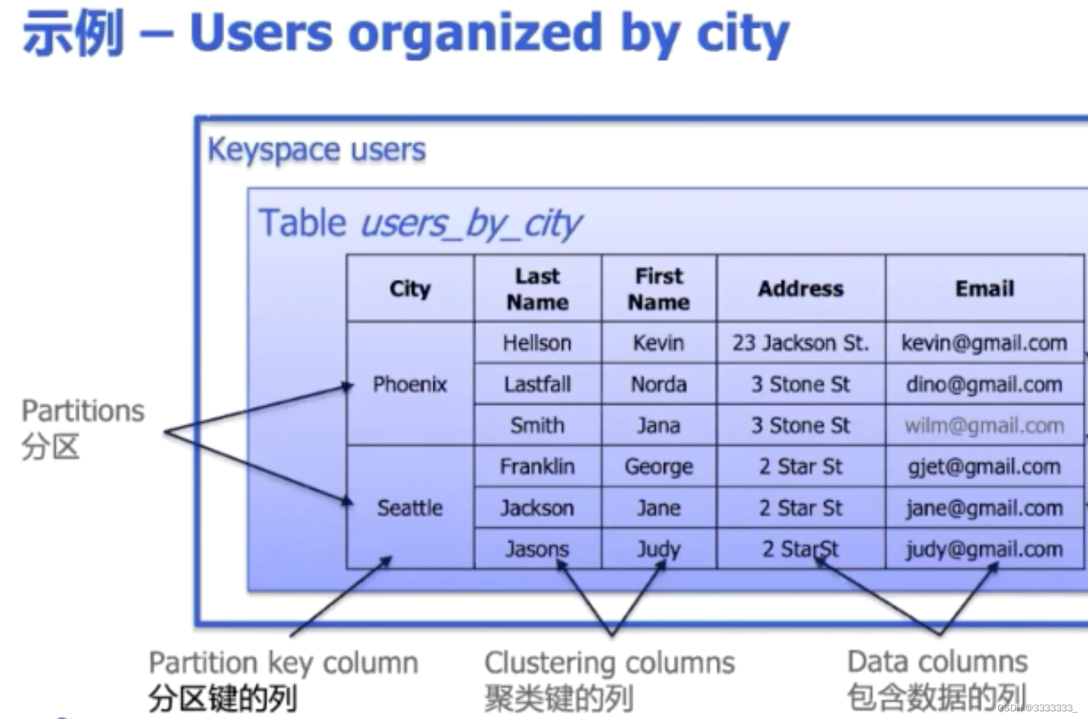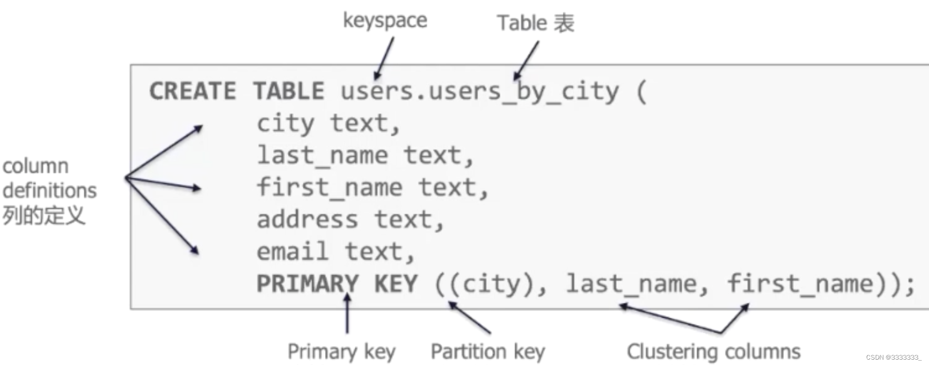 集群中,一个应用一般包含一个keyspace,一个keyspace中包含多个表。