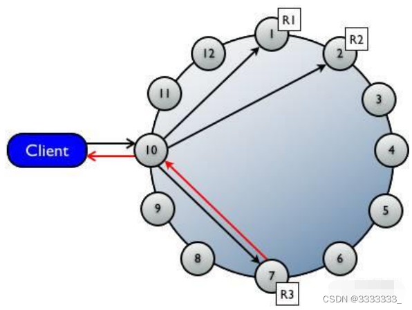 客户端连接到某一节点发起读或写请求时,该节点充当客户端应用与拥有相应数据的节点间的协调者(coordinator)以根据集群配置确定环中的哪个节点当获取这个请求。