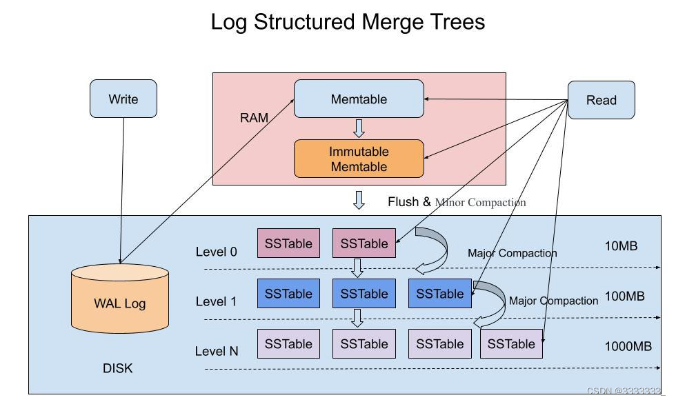 LSM树其核心思想是充分了利用了,磁盘批量的顺序写要远比随机写性能高出很多