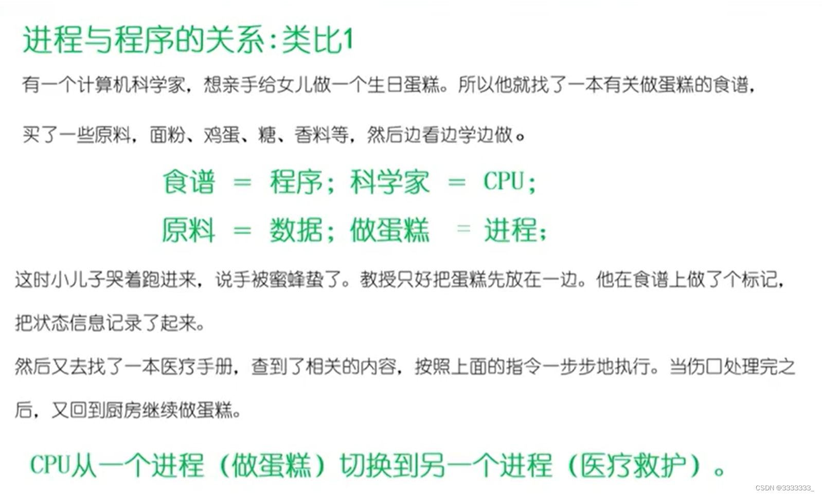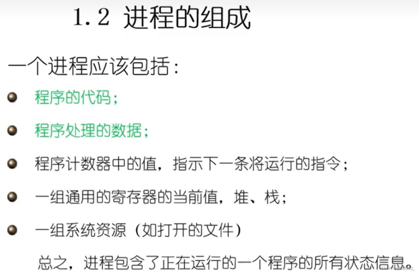 上图第一点:进程有核心态和用户态,这个怎么体现呢?核心态是操作系统中运行,但是我们写代码并没有写操作系统代码,那为什么会有核心态呢?我们写代码都是用户态,其实是进程在执行过程中需要完成特定的功能,这些功能呢只有操作系统能提供,比如说读写文件,读写文件的过程是与硬盘打交道,这个过程需要操作系统来完成,所以说进程只需要给操作系统发出请求,操作系统代表进程在内核中执行,那么这个时候进程处于核心态。