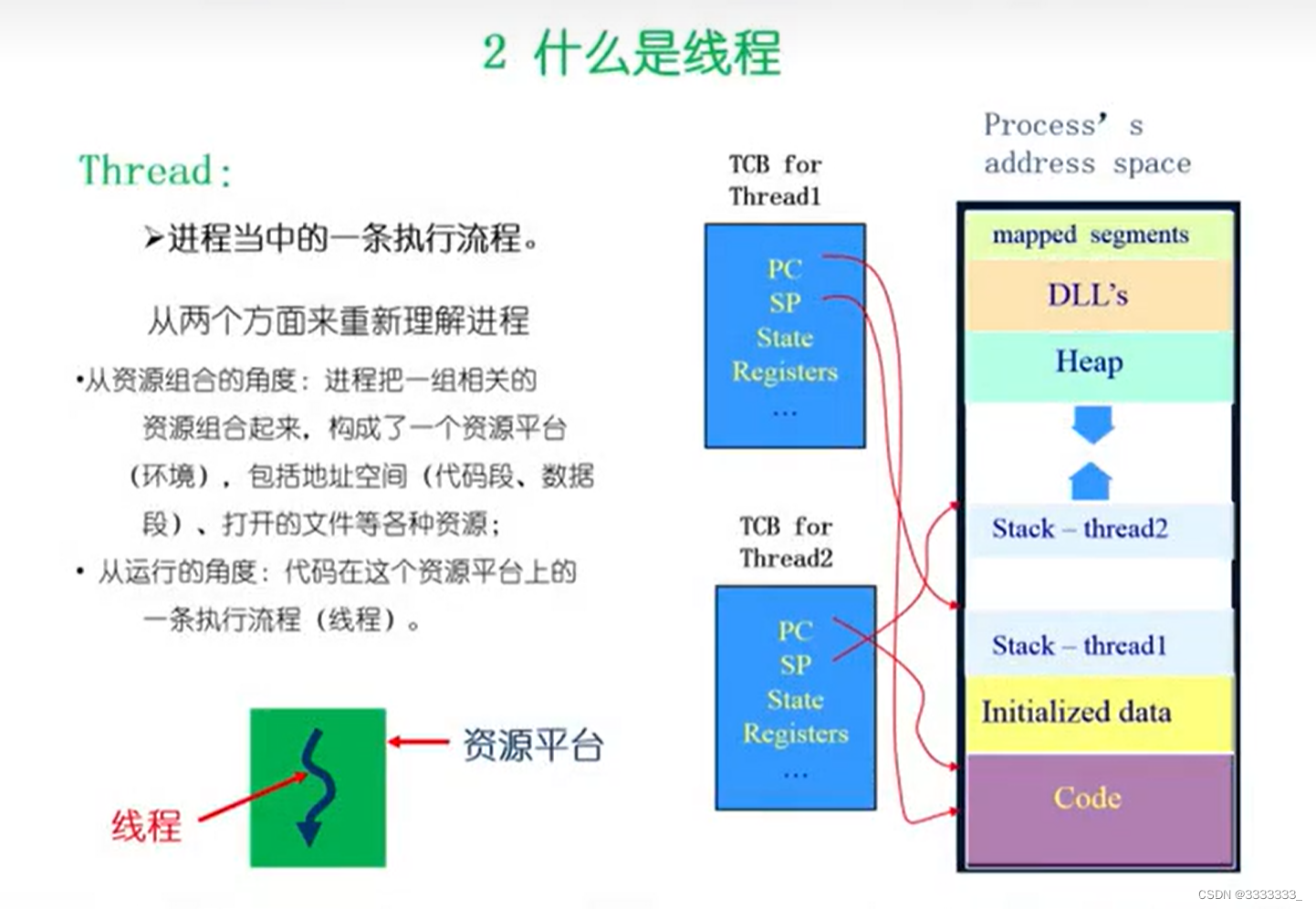 上图 线程=进程-共享资源的意思就是 线程等于进程所有功能减去资源管理这部分就是线程。