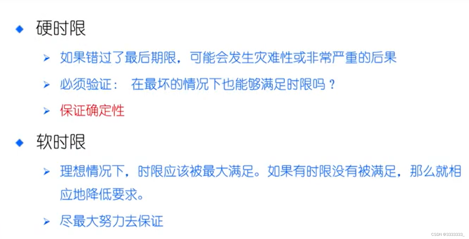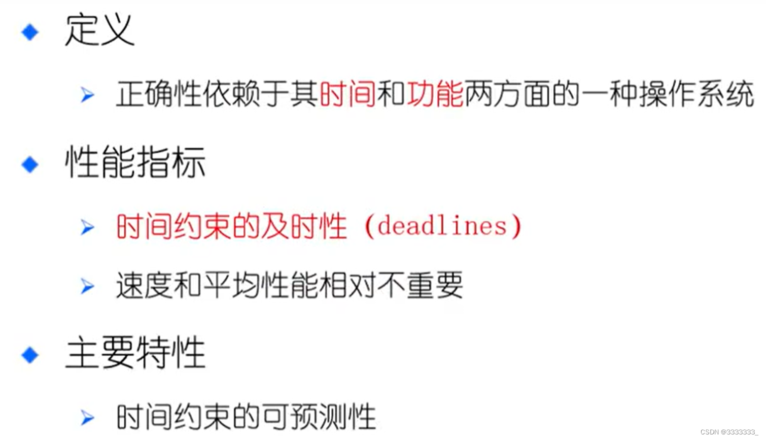 实时系统更多的是用在工业控制,比如说火车或者说是一些机床,或者是一些嵌入式工厂里面,控制环境里面需要确保某一些任务需要能够在规定时间之内必须完成,这个规定时间就是real time一个体现,你要在将来某段时间内必须完成某件事情,这就是real time,这个时间是确定的。