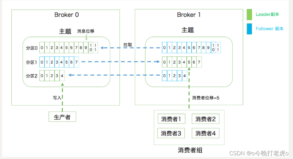 在这种机制下,当我们的领导者副本宕机后,也至少有一个和领导者副本数据完全同步的追随者副本来备用