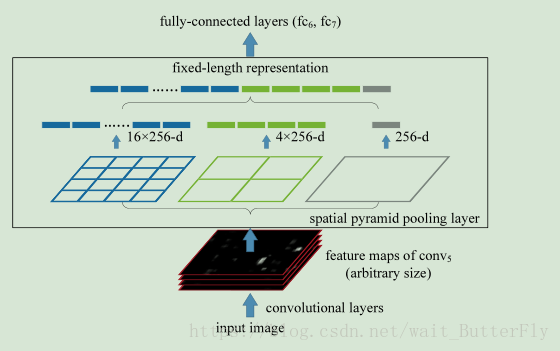 那么conv层不用固定大小,FC层的输入又要固定大小,那么在这两者之间加上一层SPP即可解决这个问题了。