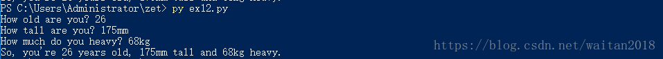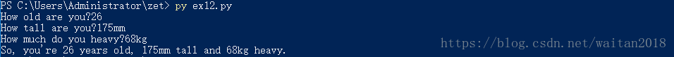 注意: 上面input()最后都加个空格,这个让代码更加美观。否则就会显示成这样,感觉必要拥挤;