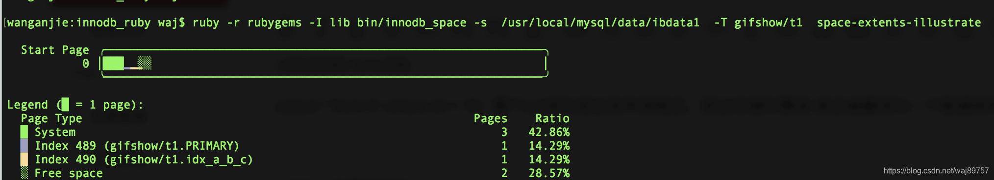 我们先不抛概念,直接看结构。当前表里有两条记录,利用mysql分析神器(https://github.com/jeremycole/innodb_ruby/wiki 后续文章讲解怎么使用)查看文件内容。