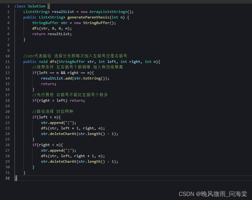 基于以上的标准, 结合我们之前说过的 路径-选择分支-结束条件 三部曲 即可解决括号生成的问题