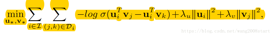 loss:-log( sigmiod(u_i*v_j-u_i*v_k))+正则项