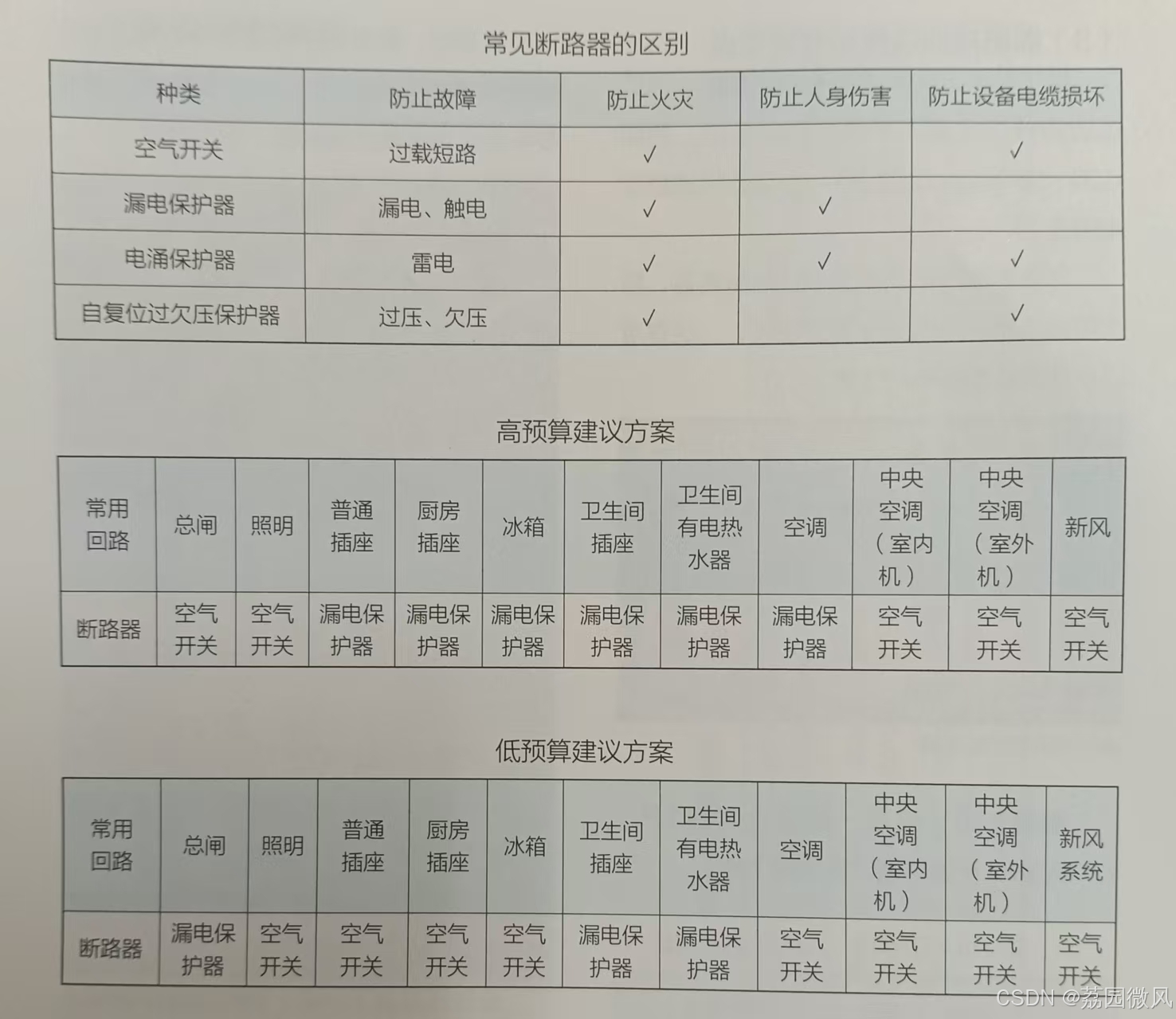 若预算高,则人体能接触的分路都使用漏电保护器 |