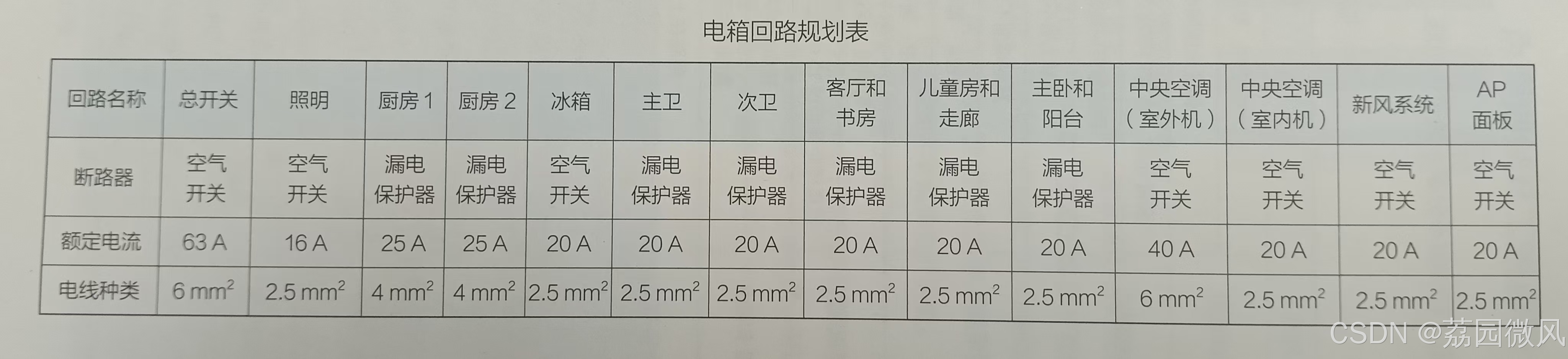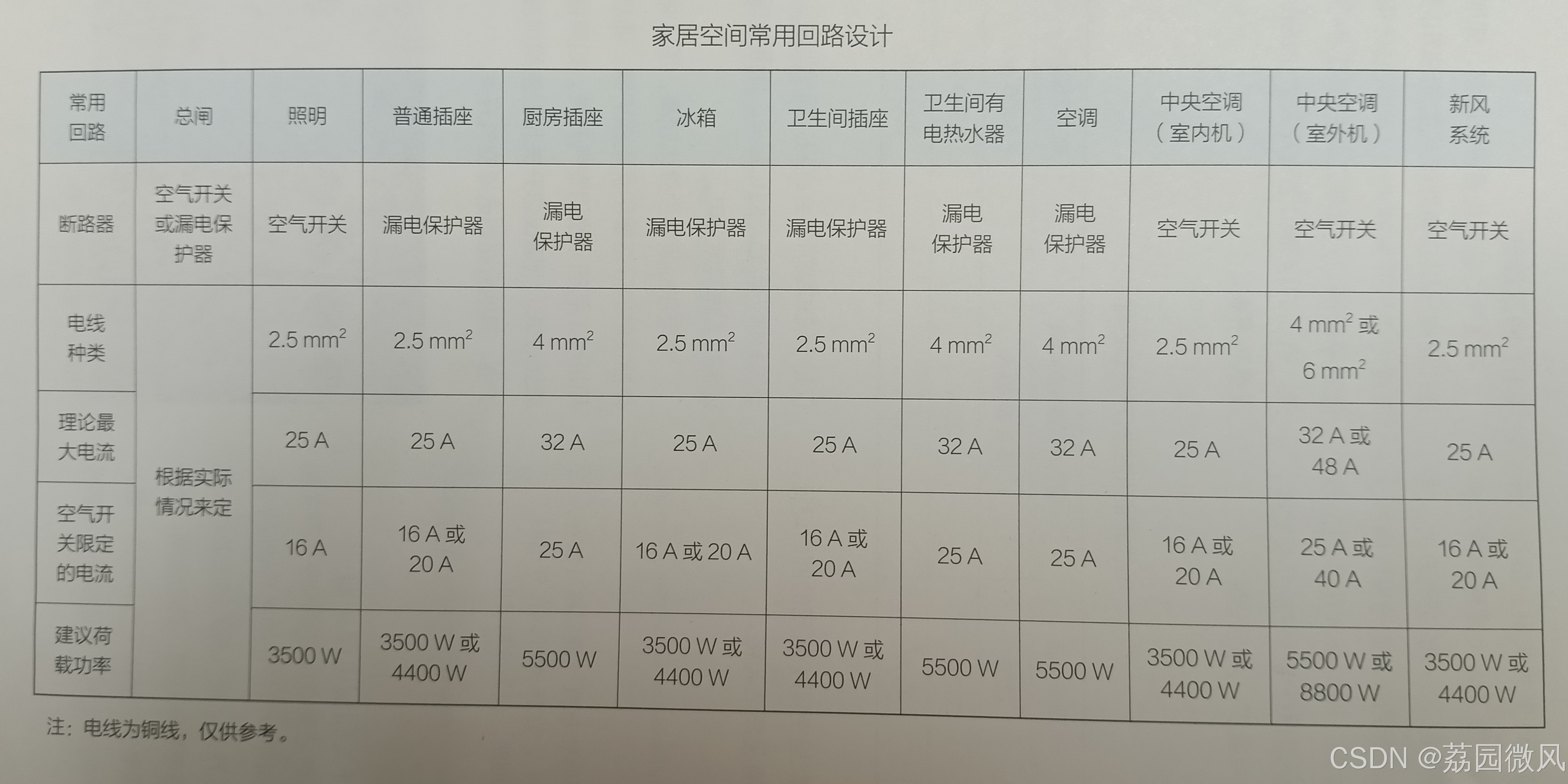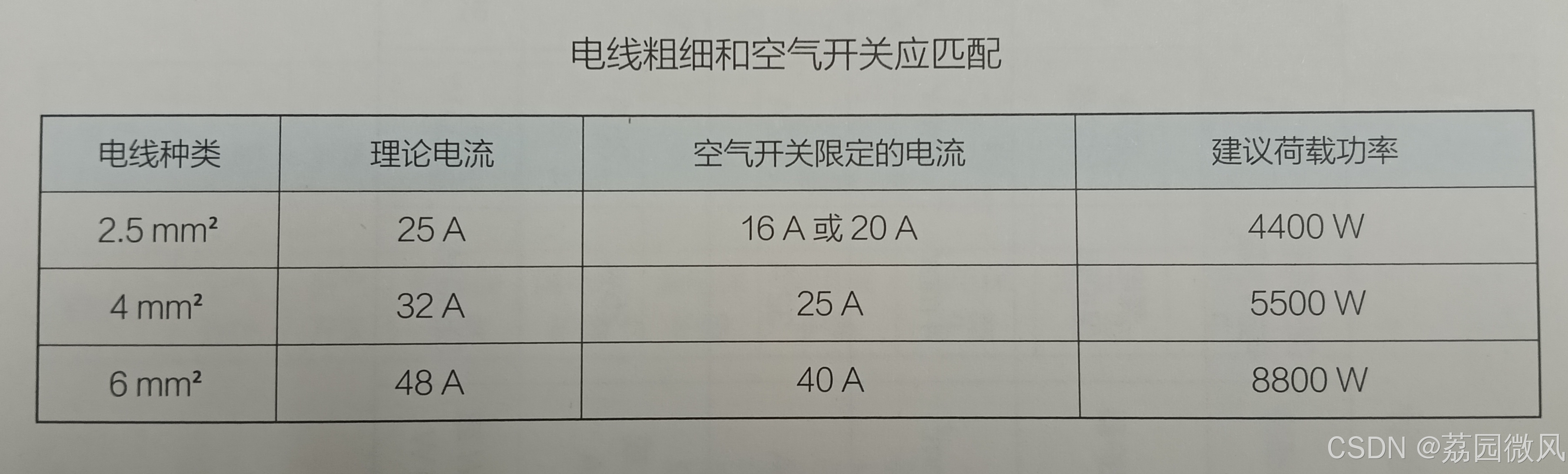 2.5mm²电线配16A或20A空气开关 |