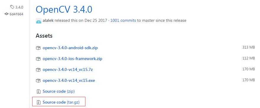 github地址: https://github.com/opencv/opencv/releases/tag/3.4.0