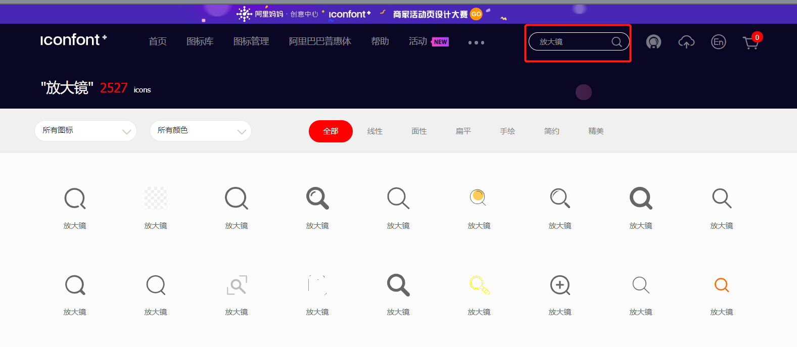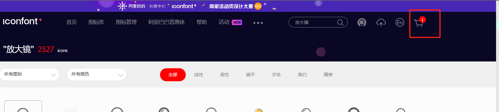 步骤一.找到阿里巴巴矢量图标库官网,然后注册登录