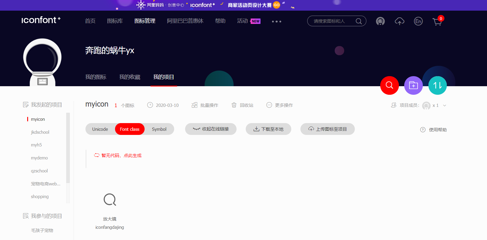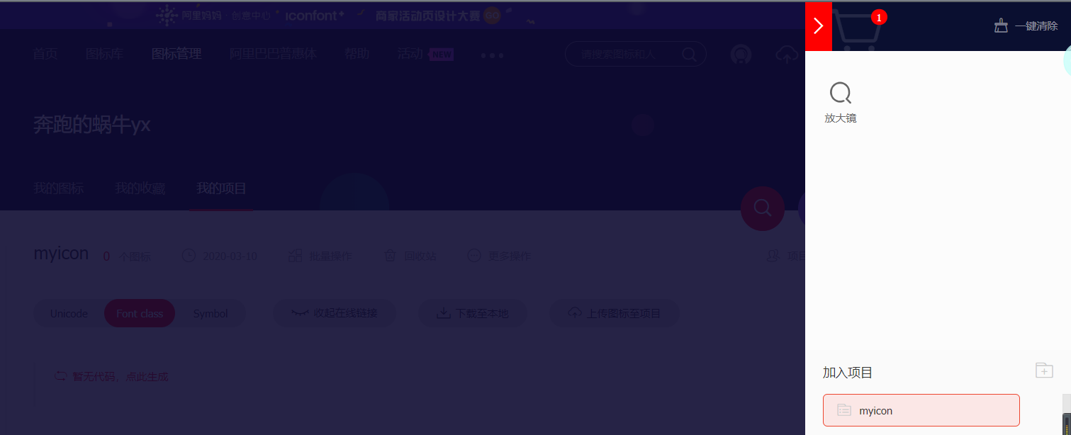 以上就是阿里巴巴矢量图标库-iconfont的使用,另外根据项目需求也可以生成自己的图标字体,也就是将svg图片转换为图标字体,具体可参考https://icomoon.io/app/#/select